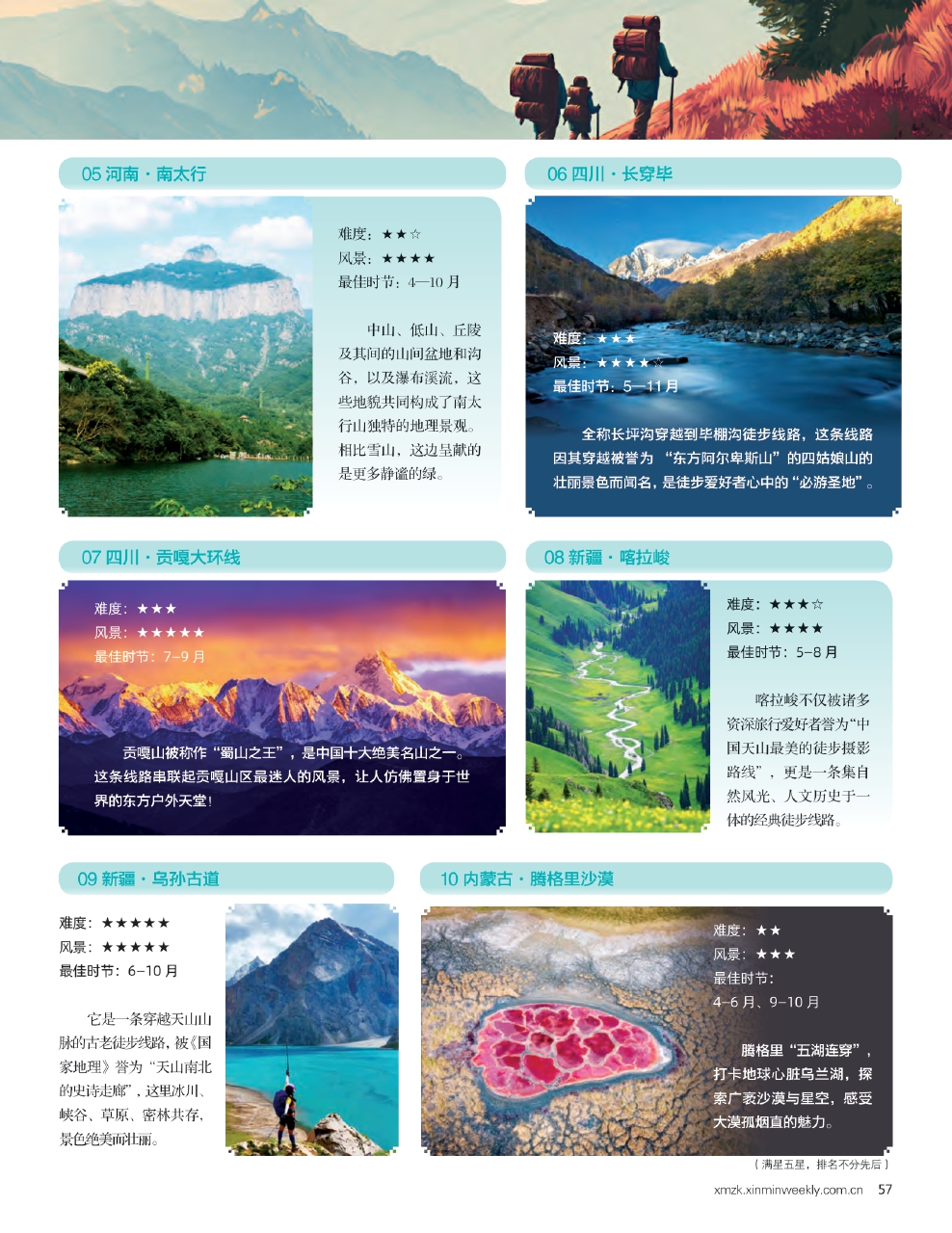 每个徒步爱好者心中都有一条属于自己的“白月光”路线。以下是国内十大经典徒步路线,你走过几条?最想挑战哪条呢?