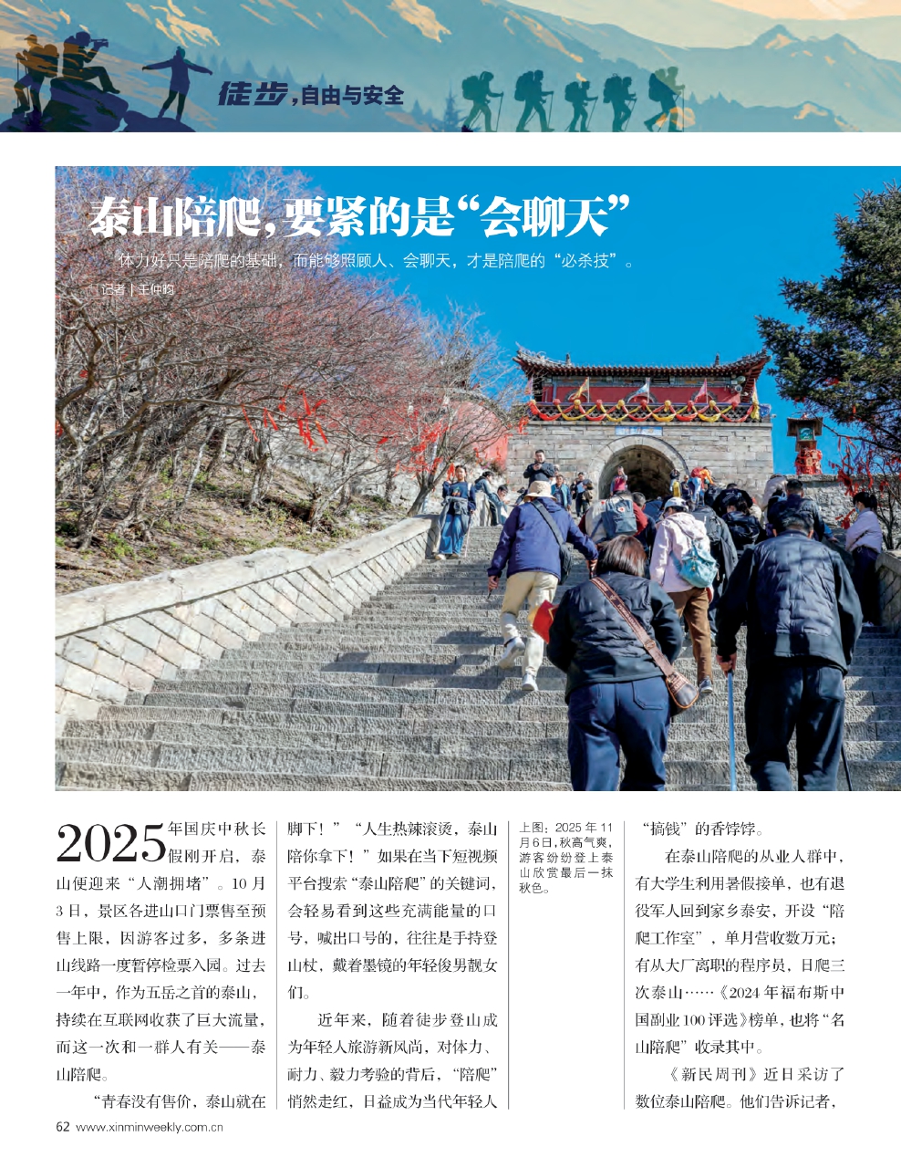 《新民周刊》近日采访了数位泰山陪爬。他们告诉记者,体力好只是陪爬的基础,而能够照顾人、会聊天,才是陪爬的“必杀技”。真正让消费者为陪爬服务买单的,是远超向导范畴的情绪价值。