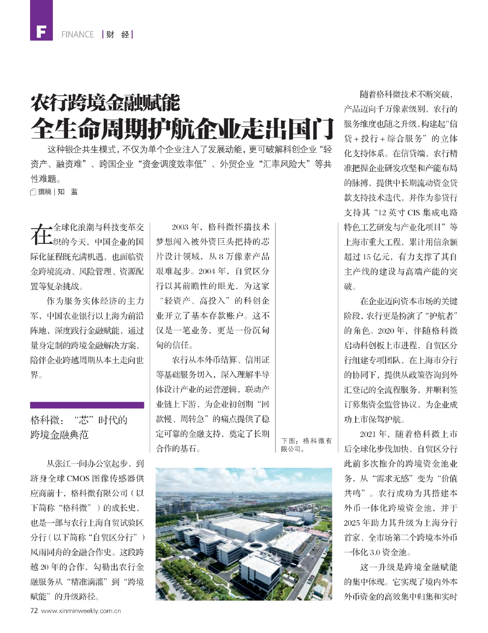 2021年,随着格科微上市后全球化步伐加快,自贸区分行此前多次推介的跨境资金池业务,从“需求无感”变为“价值共鸣”。农行成功为其搭建本外币一体化跨境资金池,并于2025年助力其升级为上海分行首家、全市场第二个跨境本外币一体化3.0资金池。