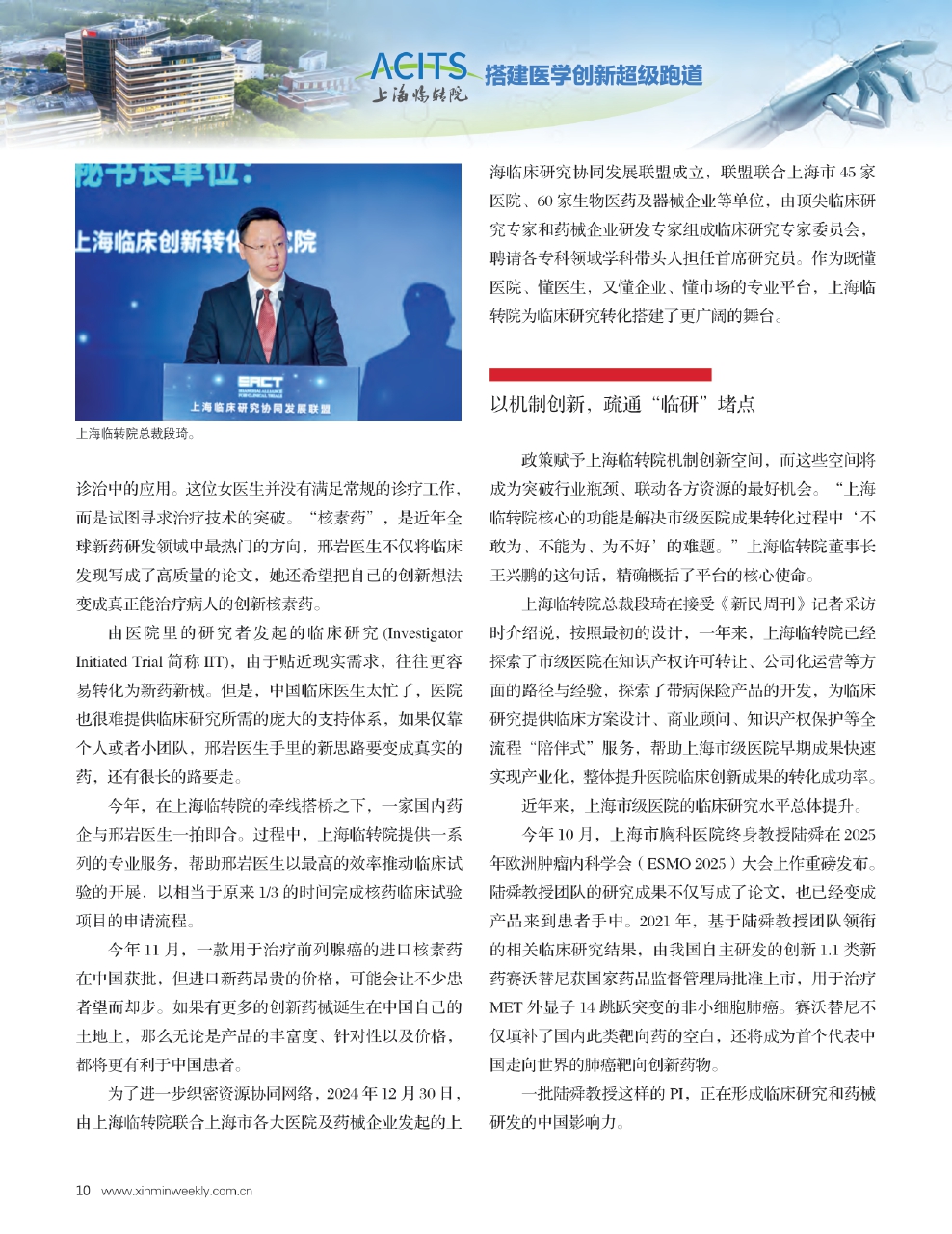 上海,这座坐拥37家市级三甲医院,以及复旦大学、上海交通大学等著名高校、众多科研院所的城市,向来是中国医疗高地,也是临床创新最为活跃的城市。如何破解临床研究转化中“不敢为、不能为、为不好”的难题,成为上海生物医药产业迈向更高质量发展的关键命题。