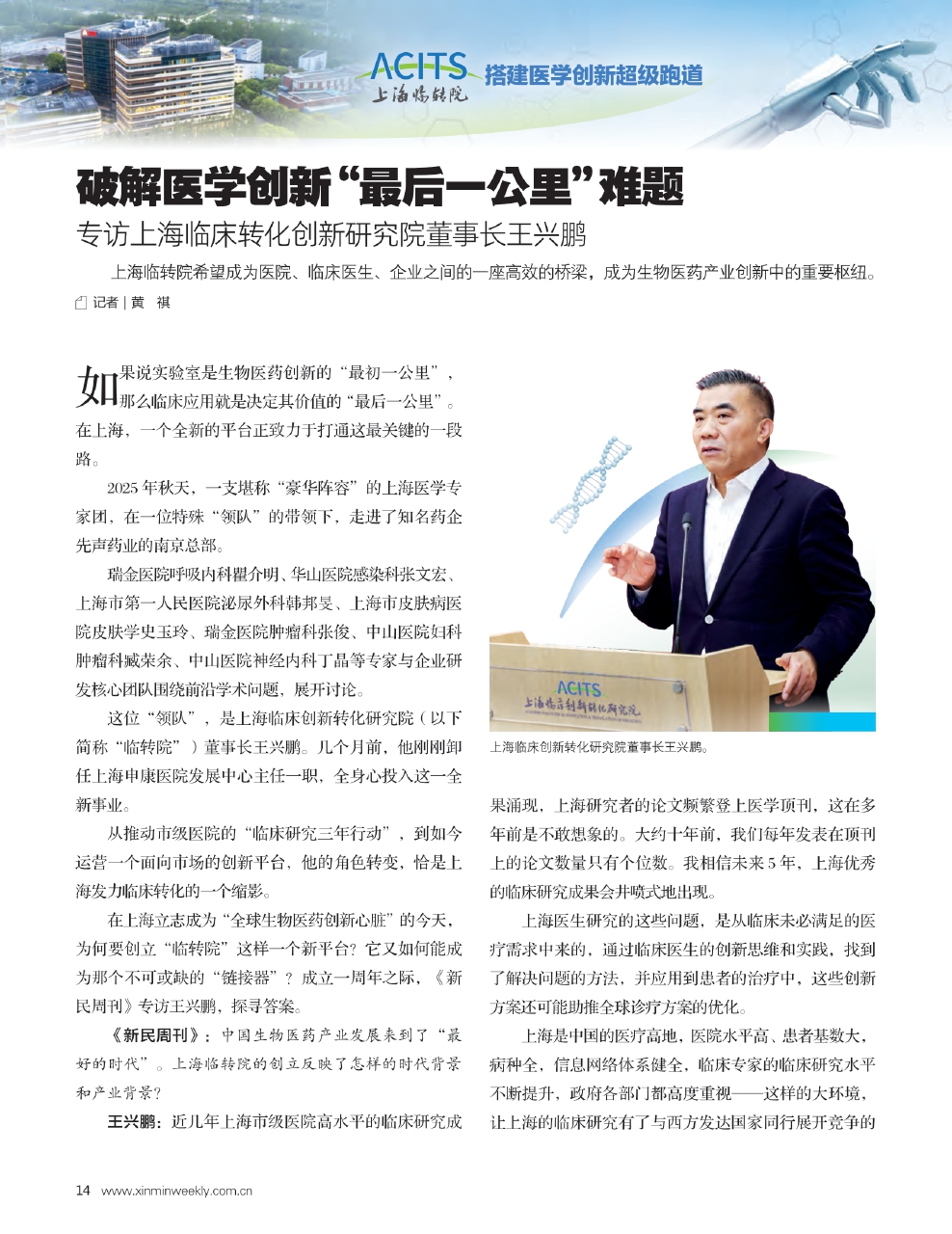 上海临床创新转化研究院董事长王兴鹏。