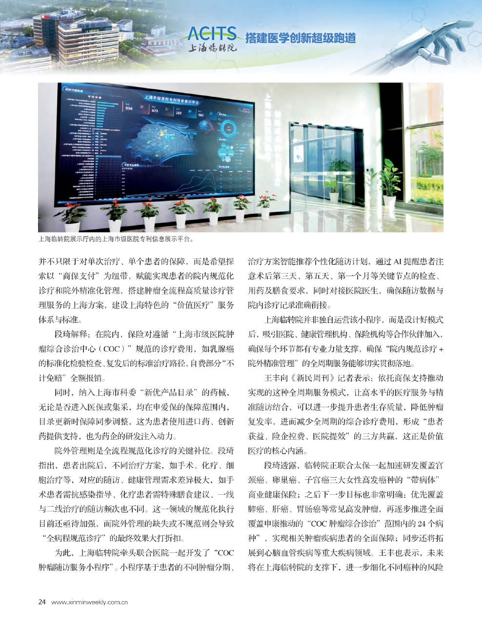 王丰向《新民周刊》记者表示:依托商保支持推动实现的这种全周期服务模式,让高水平的医疗服务与精准随访结合,可以进一步提升患者生存质量,降低肿瘤复发率,进而减少全周期的综合诊疗费用,形成“患者获益、险企控费、医院提效”的三方共赢,这正是价值医疗的核心内涵。