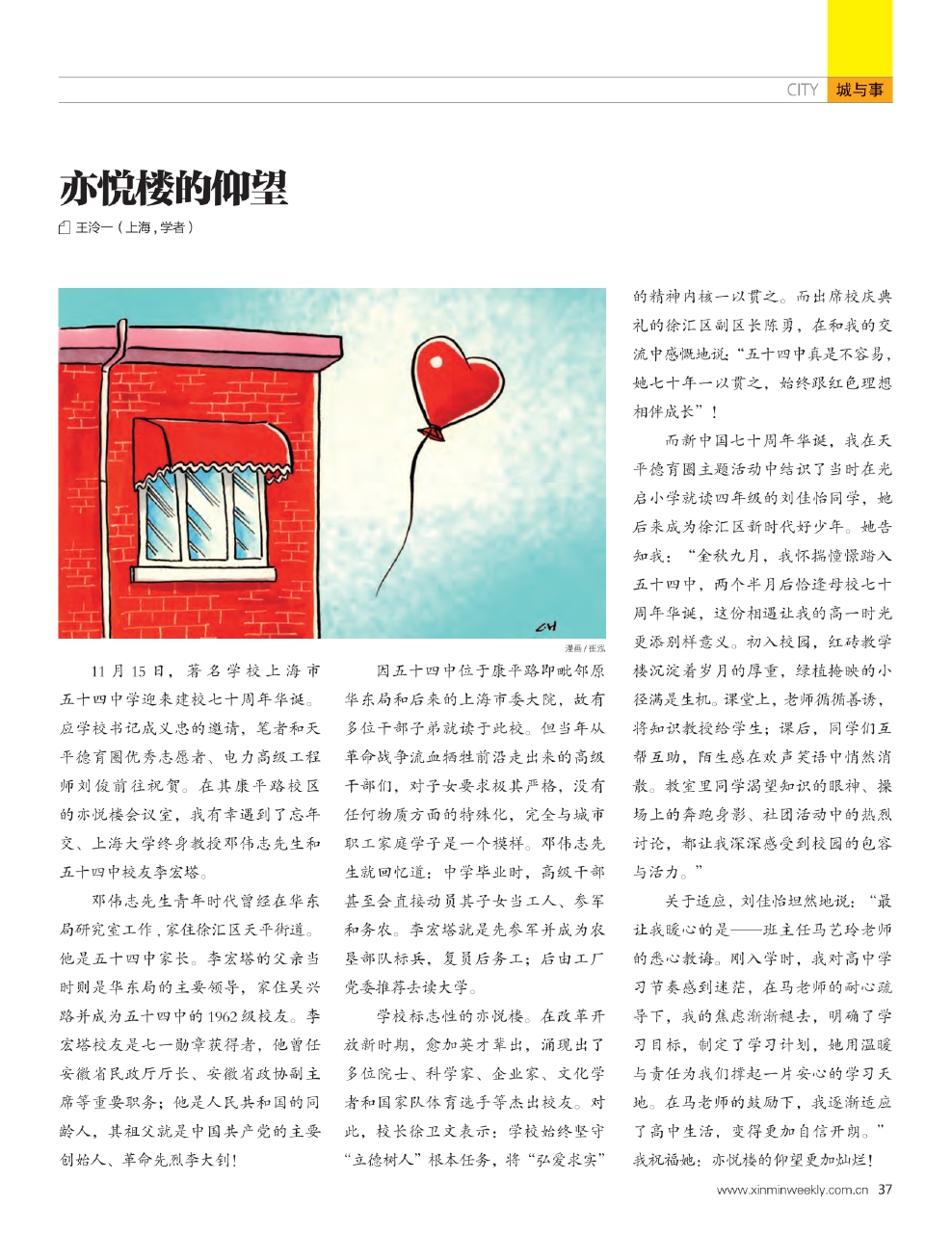 学校标志性的亦悦楼。在改革开放新时期,愈加英才辈出,涌现出了多位院士、科学家、企业家、文化学者和国家队体育选手等杰出校友。对此,校长徐卫文表示:学校始终坚守“立德树人”根本任务,将“弘爱求实”的精神内核一以贯之。而出席校庆典礼的徐汇区副区长陈勇,在和我的交流中感慨地说:“五十四中真是不容易,她七十年一以贯之,始终跟红色理想相伴成长”!