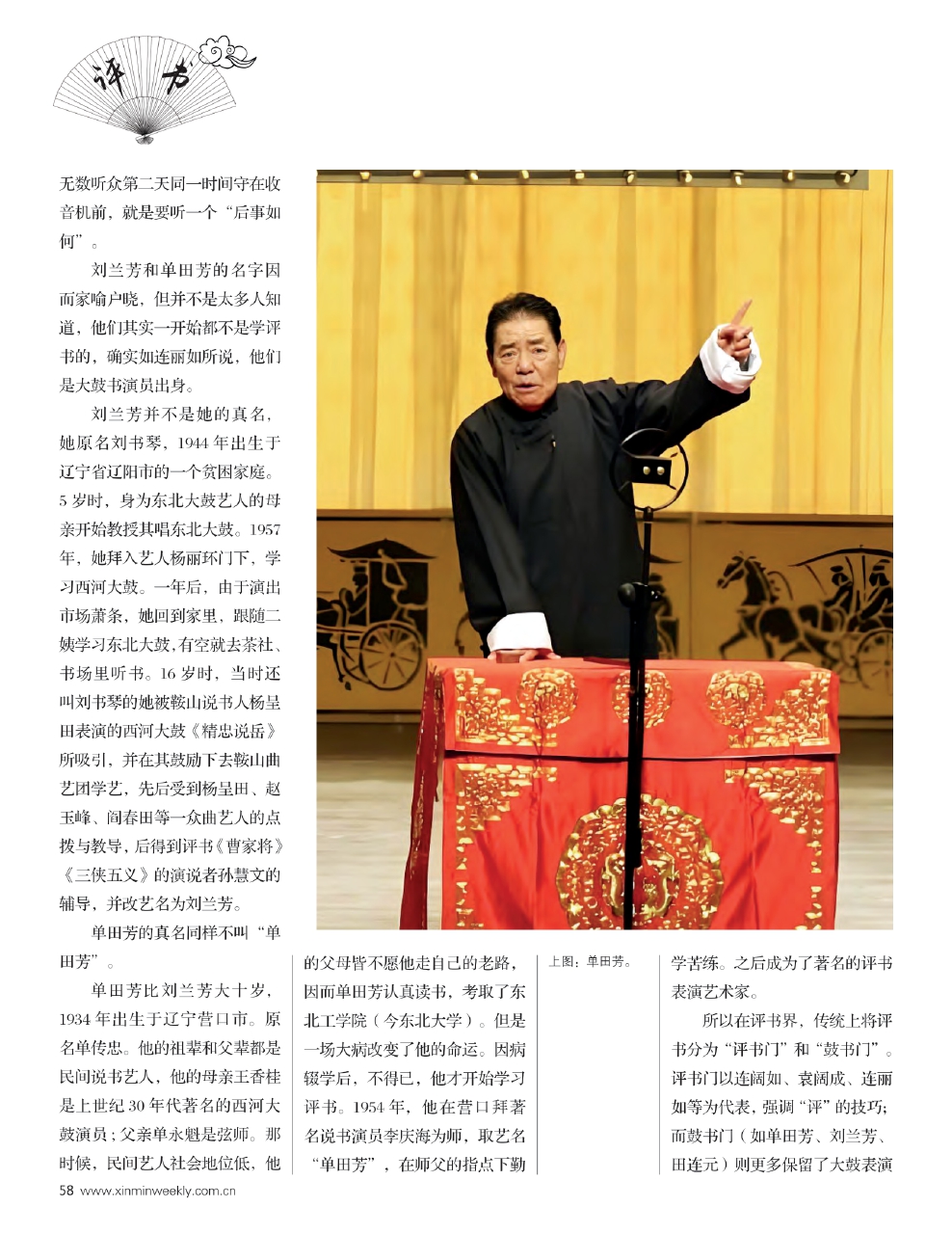 刘兰芳和单田芳的名字因而家喻户晓,但并不是太多人知道,他们其实一开始都不是学评书的,确实如连丽如所说,他们是大鼓书演员出身。