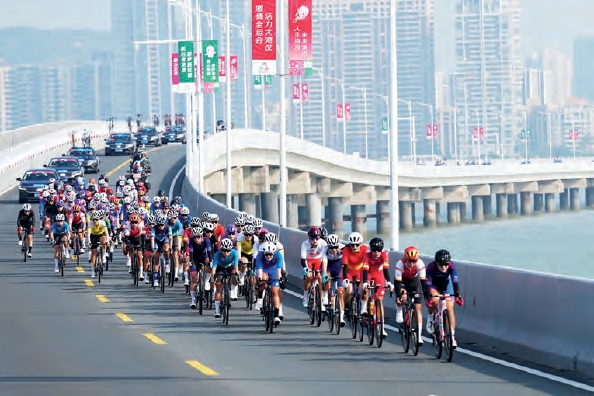下图:11月9日,第十五届全国运动会公路自行车女子个人赛在广东珠海举行。比赛起终点均在珠海,主要途经珠海市区情侣路沿线及横琴粤澳深度合作区城市道路,总里程138.7公里。