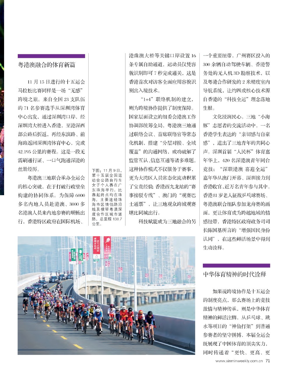 这是全运会历史上首次由粤港澳三地联合承办的体育盛会,既彰显着“一国两制”的生动实践,也书写着大湾区深度融合的新篇章。