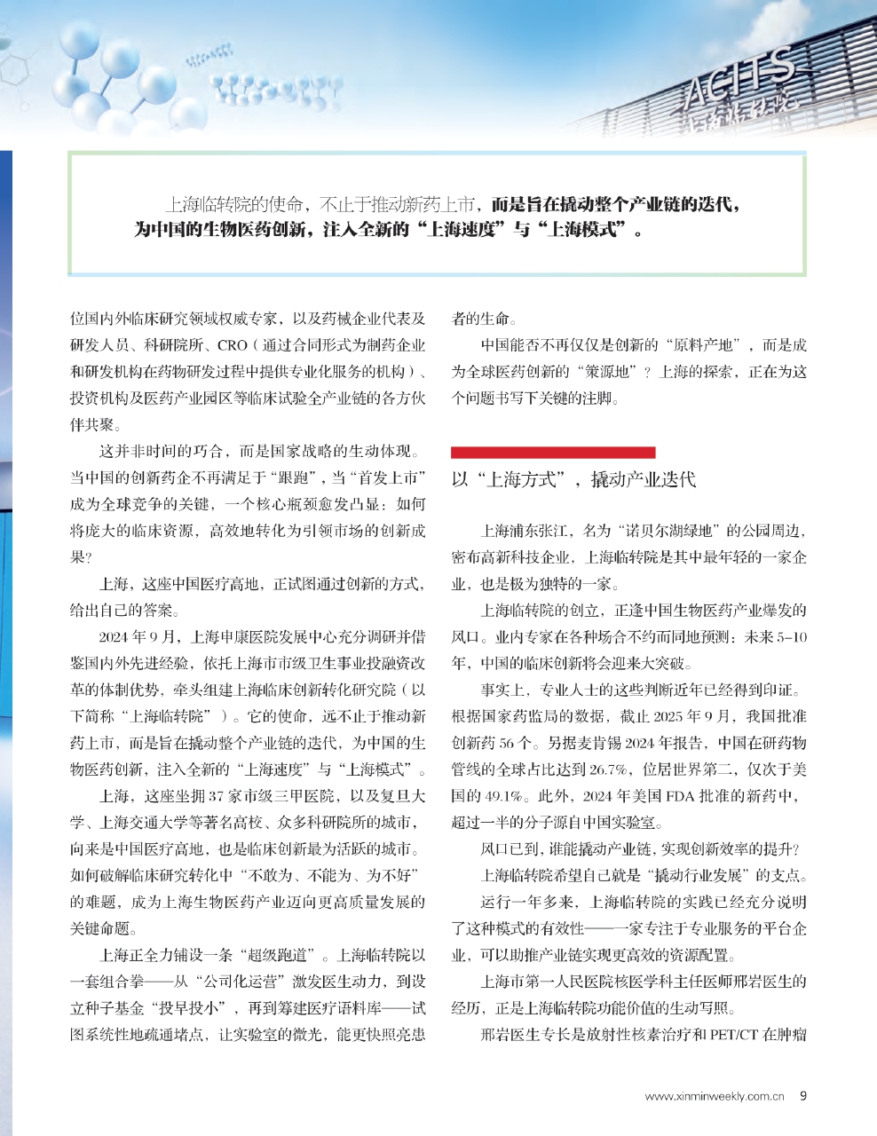 在生物医药产业黄金赛道上,上海正以临床研究和转化的蝶变为引擎,实现中国生物医药的倍速发展。