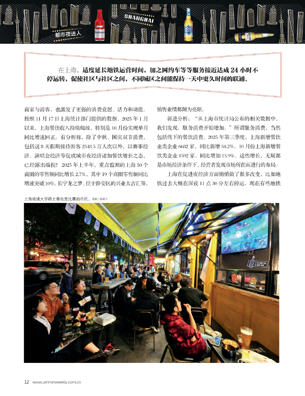 “前不久,我了解到一组数据,城市消费中大约有60%发生在晚上6点之后。世界经济论坛的研究也显示,夜间经济发达的城市,其GDP可以提升最高达4%。”2025年10月,比利时百威集团全球首席执行官邓明潇(Michel Doukeris)再次来到上海,参加第37次上海市市长国际企业家咨询会议(IBLAC)时,对上海市主要领导如此说道。