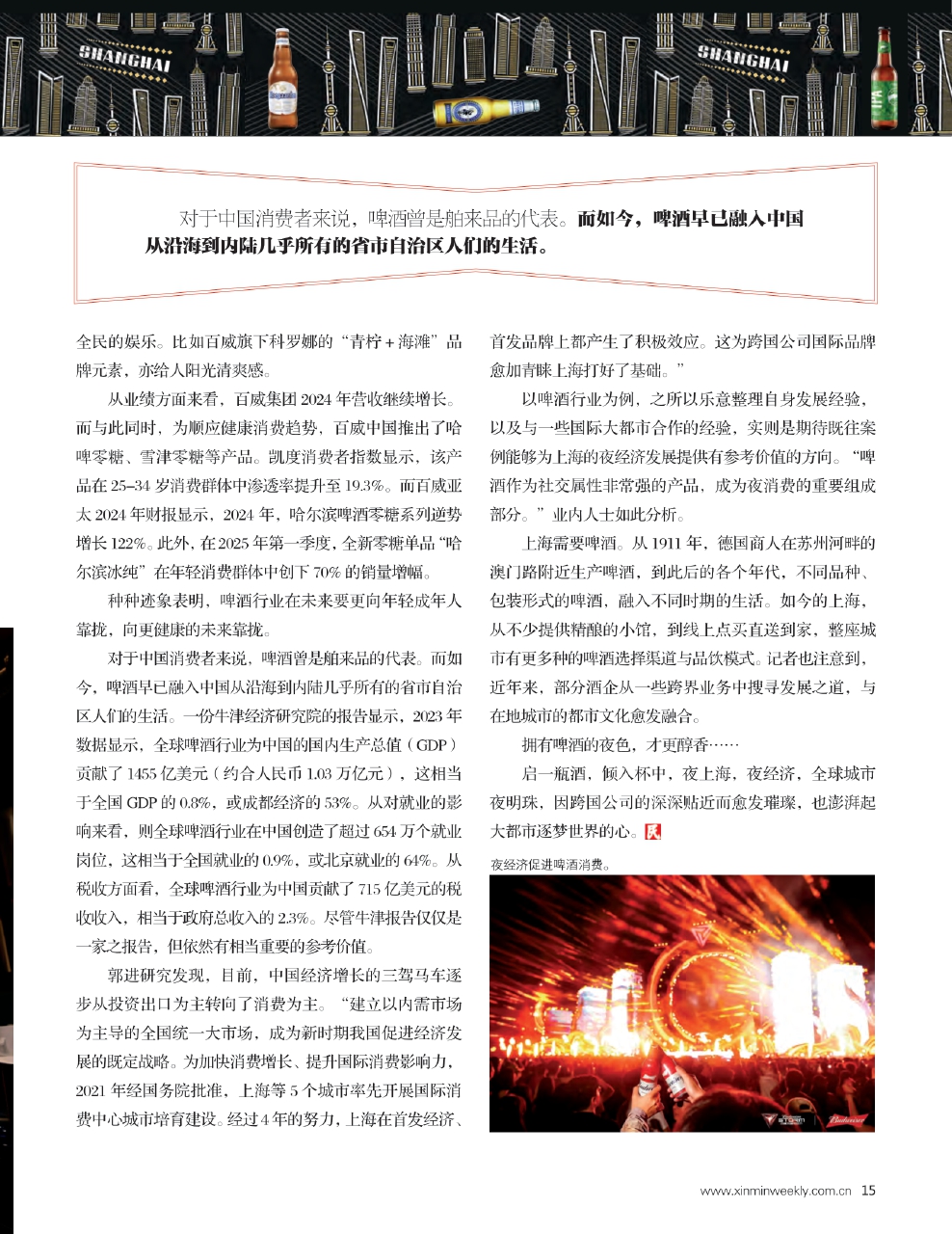 夜经济促进啤酒消费。