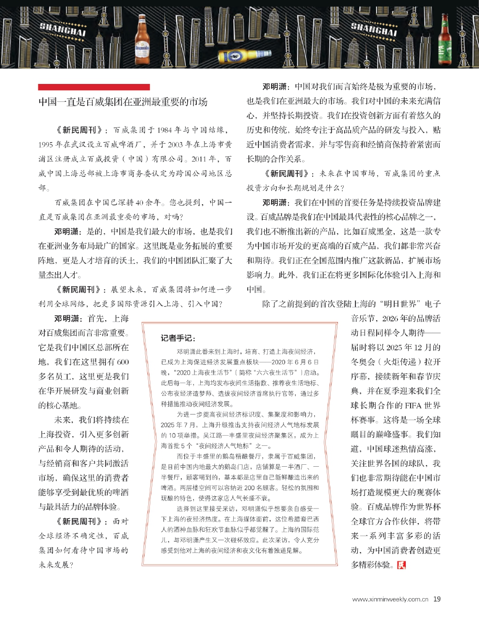 《新民周刊》:百威如何结合自身优势,助力上海乃至中国夜间经济的发展?