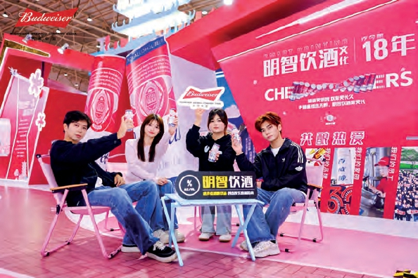 2025年10月,百威中国在武汉发起“明智碰杯”行动,巧妙借用武汉方言“蒜鸟”(意为“适可而止”),推出“碰一下蒜鸟,情义才牢靠”的创意贴纸,将中式“干杯”文化中“一饮而尽”的压力,转化为“适度碰杯”的轻松与智慧。百威中国在武汉酒博会现场还竖立起由明智饮酒贴构成的“樱花树”,并招募大学生志愿者担任“明智饮酒官”,将理念带入酒吧街等夜间娱乐场所,希望以更轻松的方式,让理性饮酒成为夜生活中的新共识。