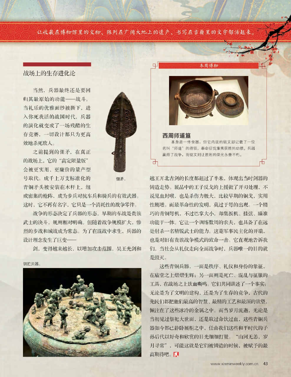 “三时务农,一时讲武”。眼前由秋入冬,正是《周礼》的“大阅”之期。走进苏州博物馆的“铸河山”青铜时代兵器展,感受滚滚历史洪流中,这些如今绿锈斑斑的青铜兵器,在当时扮演的截然不同的双重角色。