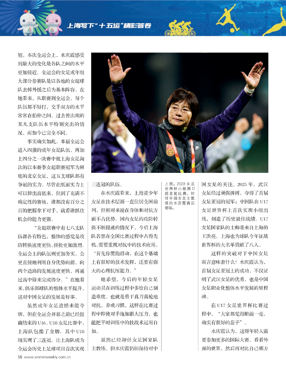 虽然已经卸任女足国家队主教练,但水庆霞仍旧保持对中国女足的关注。2025年,武汉女足经过顽强拼搏,夺得了首届女足亚冠的冠军;中国队在U17女足世界杯上首次实现小组出线,创造了历史最佳战绩。U17女足国家队的主帅是来自上海的王洪亮,上海也为球队今年征战世界杯的大名单贡献了八人。