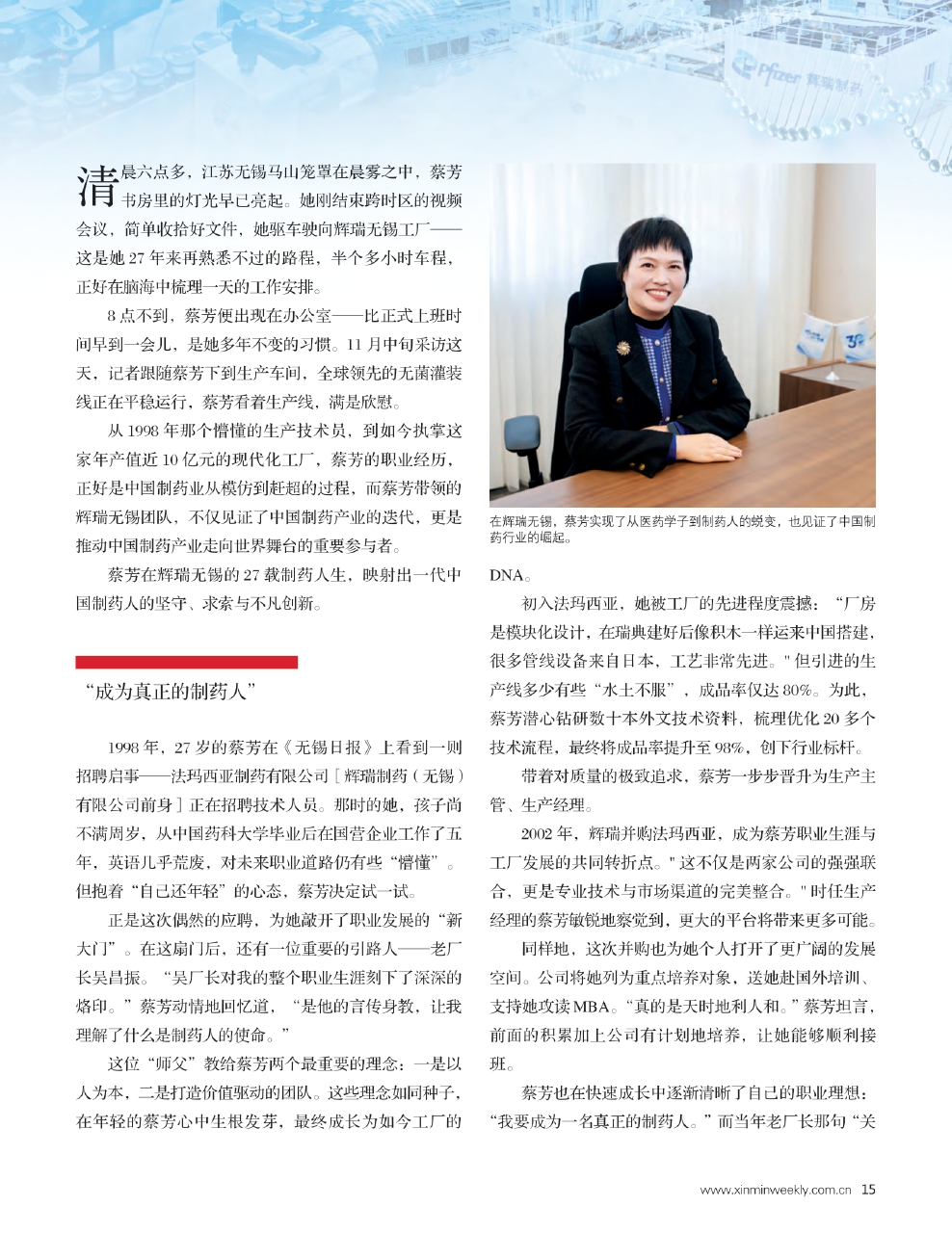 在辉瑞无锡,蔡芳实现了从医药学子到制药人的蜕变,也见证了中国制药行业的崛起。