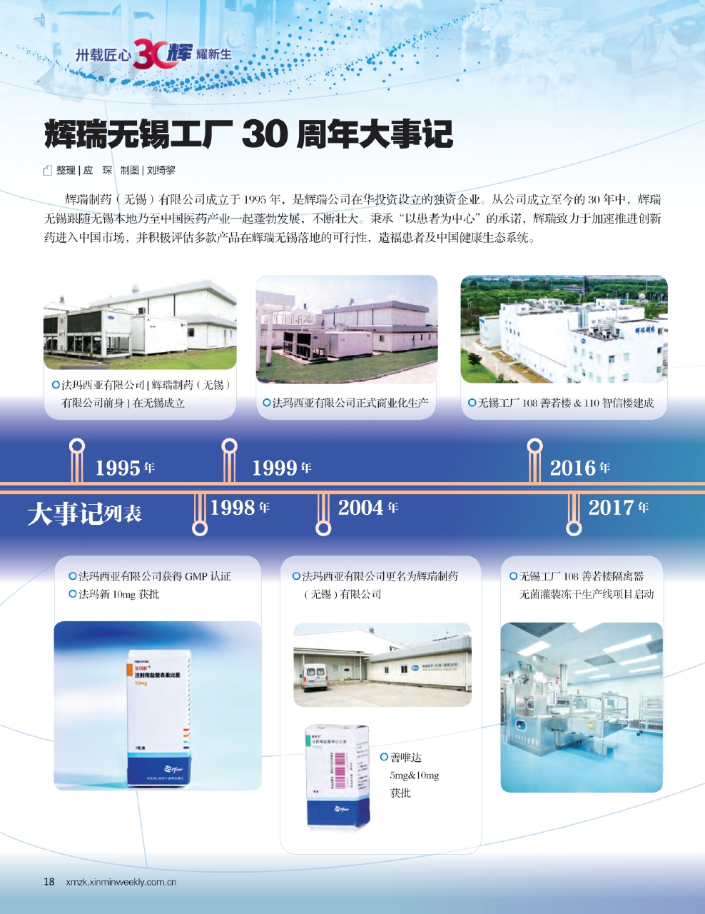 辉瑞制药(无锡)有限公司成立于1995年,是辉瑞公司在华投资设立的独资企业。从公司成立至今的30年中,辉瑞无锡跟随无锡本地乃至中国医药产业一起蓬勃发展,不断壮大。秉承“以患者为中心”的承诺,辉瑞致力于加速推进创新药进入中国市场,并积极评估多款产品在辉瑞无锡落地的可行性,造福患者及中国健康生态系统。