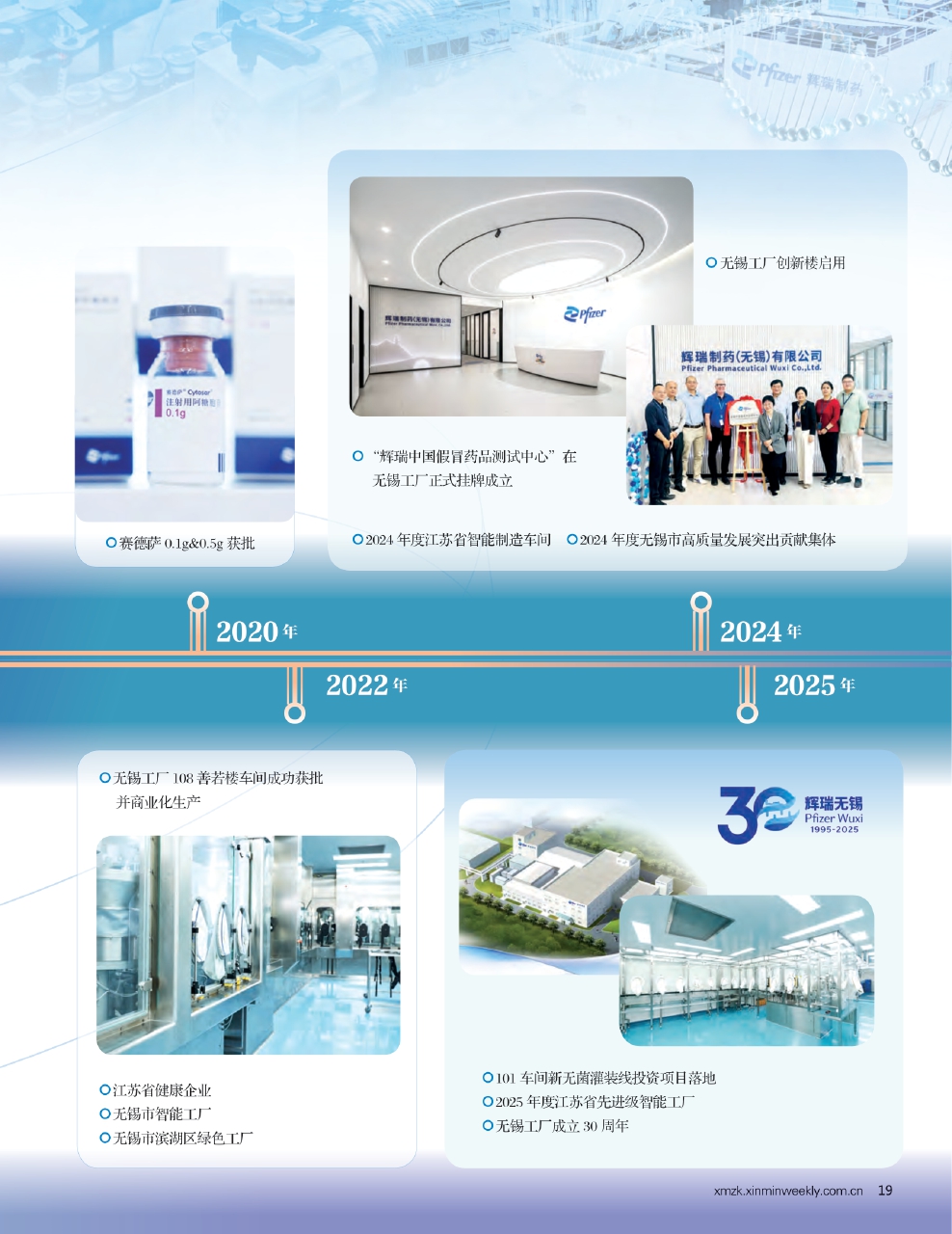 辉瑞制药(无锡)有限公司成立于1995年,是辉瑞公司在华投资设立的独资企业。从公司成立至今的30年中,辉瑞无锡跟随无锡本地乃至中国医药产业一起蓬勃发展,不断壮大。秉承“以患者为中心”的承诺,辉瑞致力于加速推进创新药进入中国市场,并积极评估多款产品在辉瑞无锡落地的可行性,造福患者及中国健康生态系统。