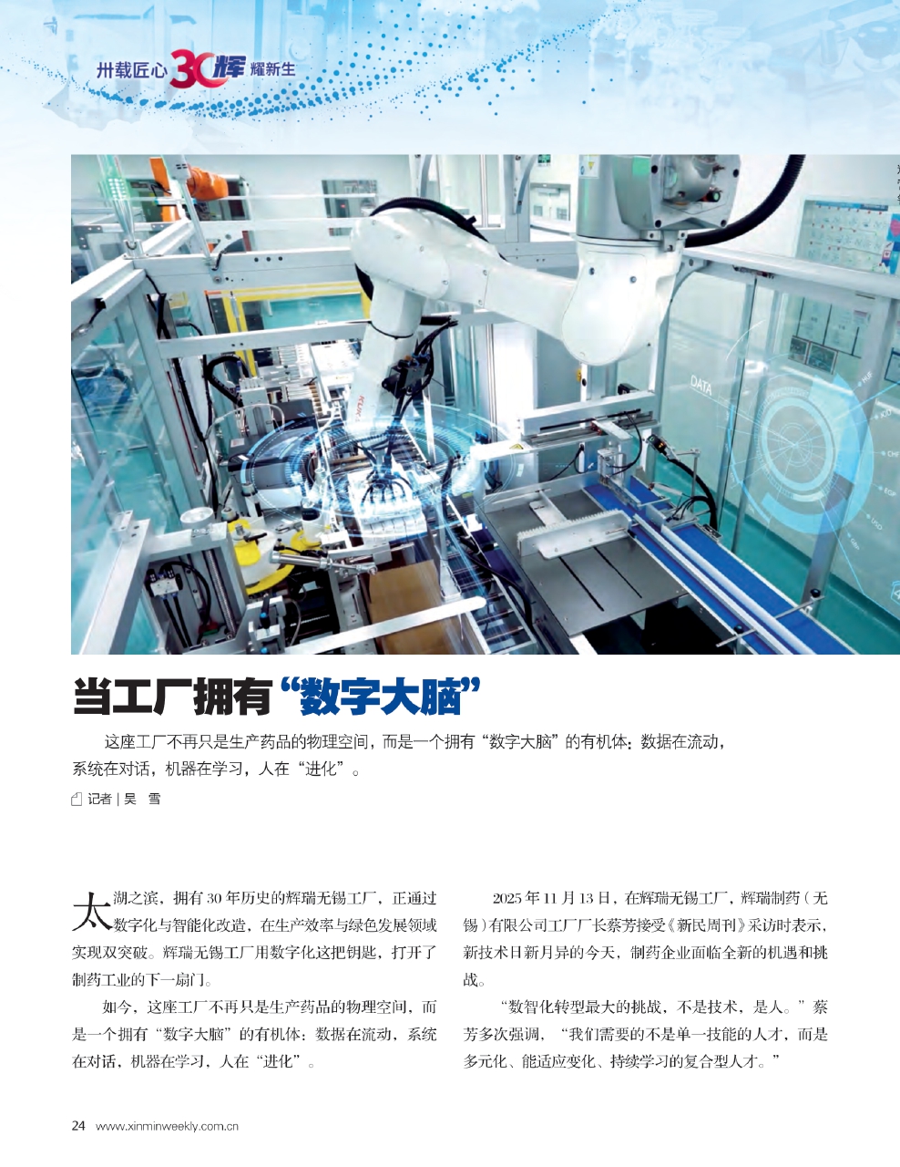 2025年11月13日,在辉瑞无锡工厂,辉瑞制药(无锡)有限公司工厂厂长蔡芳接受《新民周刊》采访时表示,新技术日新月异的今天,制药企业面临全新的机遇和挑战。