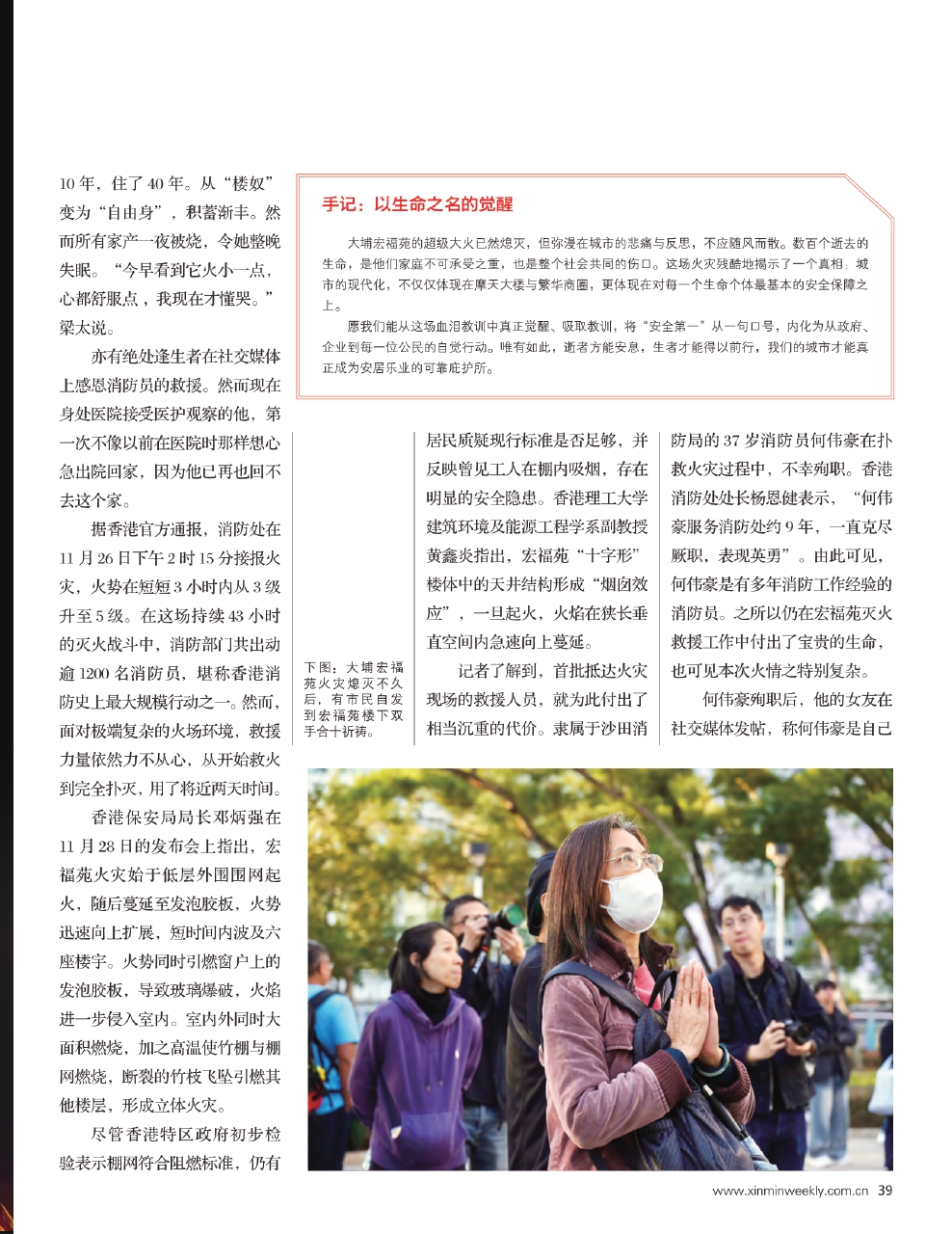 这场并非源于地震、战争等不可抗力的灾难,让香港都市繁华表象下城市安全方面之脆弱处,表露无遗;也为诸多大型城市高楼楼宇安全敲响一记警钟。