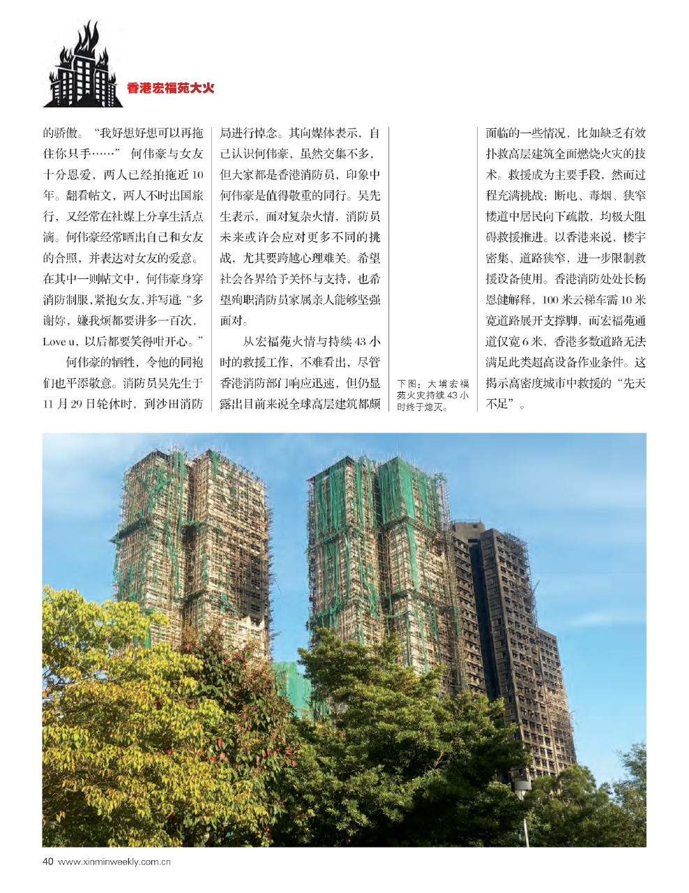 截至发稿,这场浩劫已造成156人遇难,其中包括一名英勇殉职的消防队员,另有超78人受伤,数百家庭在一夕之间支离破碎。这场并非源于地震、战争等不可抗力的灾难,让香港都市繁华表象下城市安全方面之脆弱处表露无遗;也为诸多大型城市高楼楼宇安全敲响一记警钟。