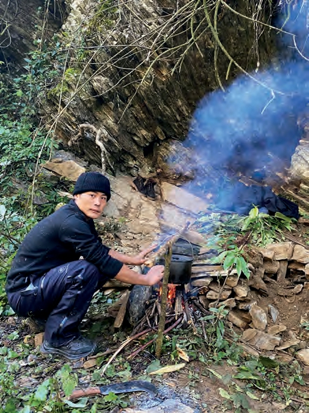 在比赛中,即便身陷绝境,王大励的“生存智慧”从未掉线。比如,他凭借乡土经验徒手挖葛根充饥,把野果煮成“大力金刚丸”储存备用,甚至大胆地将葛根藤里的白虫当作补充营养的“甜味零食”;为掌握钻木取火技能,手掌磨出血泡也不停歇,最终成功点燃火焰。