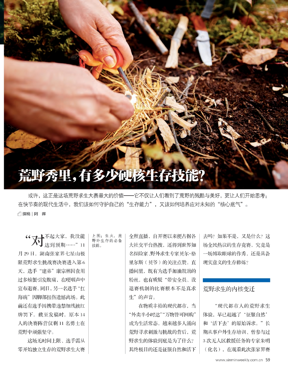 朱明认为,荒野求生热的兴起,与现代都市人的“生存焦虑”密切相关。“在快节奏的都市生活中,人们往往被工作、家庭等多重压力裹挟,失去了对自我的掌控感。而在荒野中,哪怕只是成功生起一堆火、找到一口水,都能带来强烈的成就感,这种成就感正是对都市焦虑的有效治愈。”他表示,从这个角度而言,荒野求生更像是一种“心理疗愈”,其价值不在于征服,而在于接纳——接纳自然的无常,也接纳自身的局限。