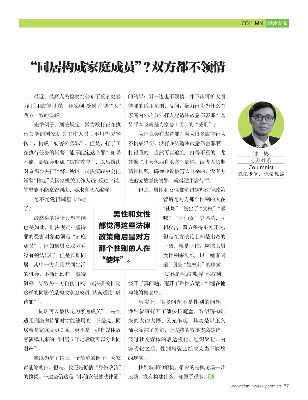 最近,最高人民检察院公布了反家庭暴力(适用虐待罪)的一组案例,受到了“男”“女”两方一致的误解。