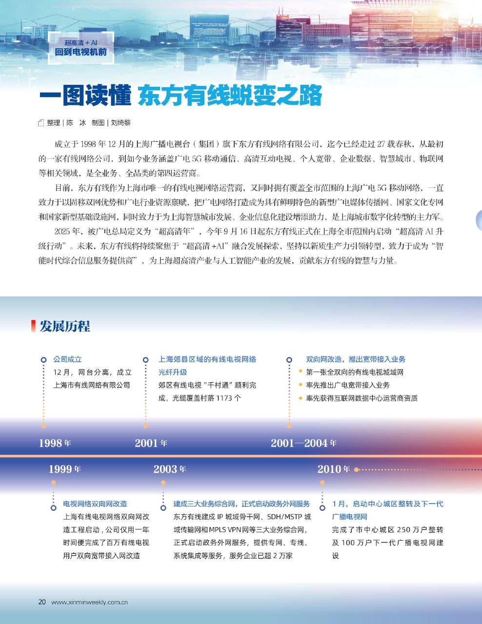 2025年,被广电总局定义为“超高清年”,今年9月16日起东方有线正式在上海全市范围内启动“超高清AI升级行动”。未来,东方有线将持续聚焦于“超高清+AI”融合发展探索,坚持以新质生产力引领转型,致力于成为“智能时代综合信息服务提供商”,为上海超高清产业与人工智能产业的发展,贡献东方有线的智慧与力量。