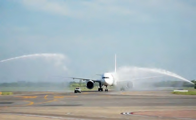 当地时间12月4日16时44分,东航MU745航班平稳降落在阿根廷首都布宜诺斯艾利斯的埃塞萨国际机场,当地以象征国际民航最高礼仪的“水门仪式”为远道而来的旅客和机组人员接风洗尘。