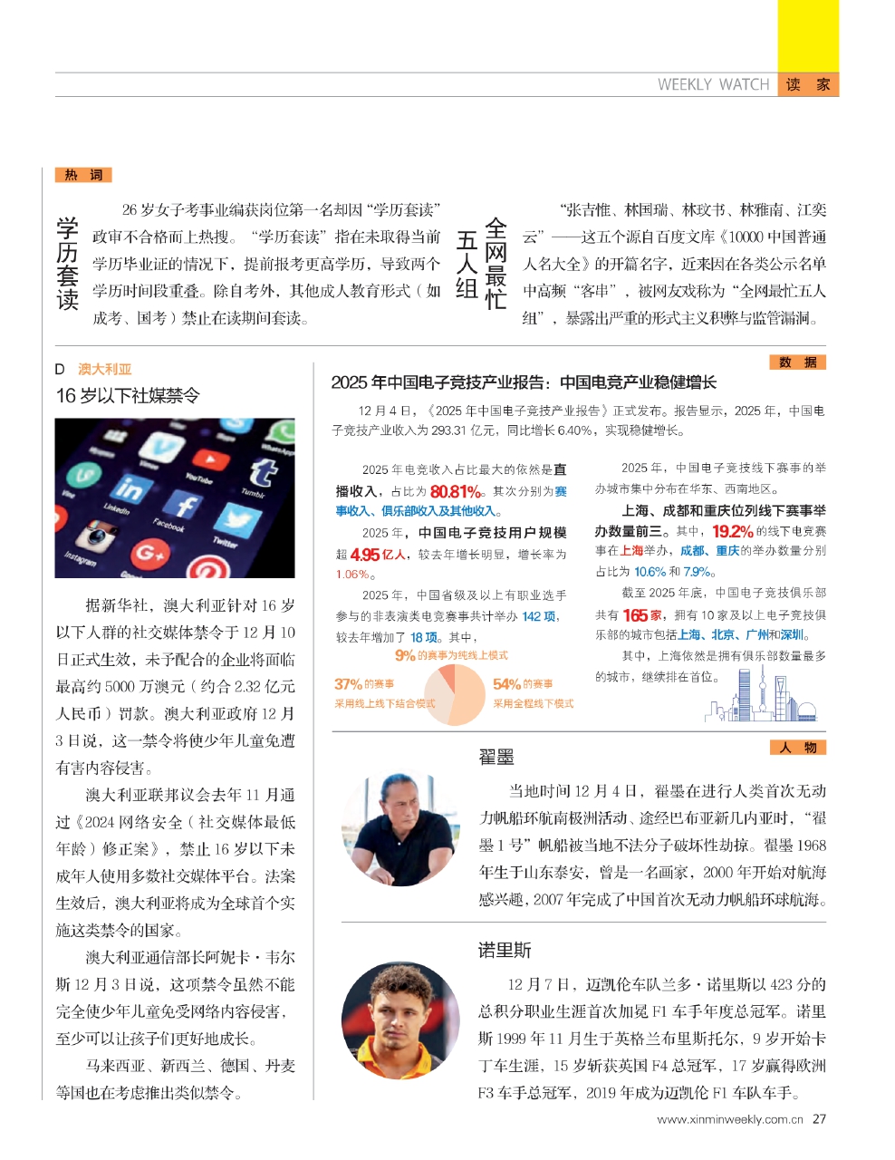 据新华社,澳大利亚针对16岁以下人群的社交媒体禁令于12月10日正式生效,未予配合的企业将面临最高约5000万澳元(约合2.32亿元人民币)罚款。澳大利亚政府12月3日说,这一禁令将使少年儿童免遭有害内容侵害。