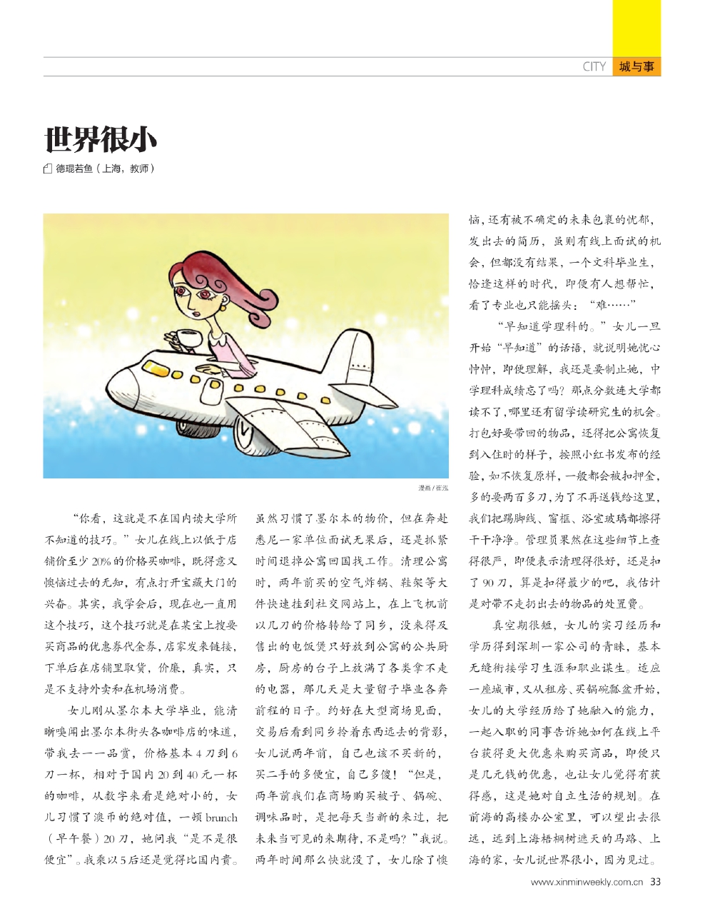 真空期很短,女儿的实习经历和学历得到深圳一家公司的青睐,基本无缝衔接学习生涯和职业谋生。适应一座城市,又从租房、买锅碗瓢盆开始,女儿的大学经历给了她融入的能力,一起入职的同事告诉她如何在线上平台获得更大优惠来购买商品,即便只是几元钱的优惠,也让女儿觉得有获得感,这是她对自立生活的规划。在前海的高楼办公室里,可以望出去很远,远到上海梧桐树遮天的马路、上海的家,女儿说世界很小,因为见过。