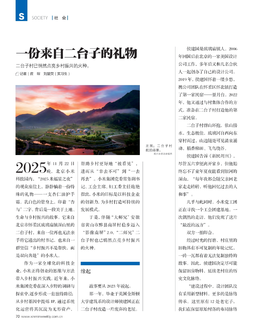“我们选择的,是那些本身有基因、有故事,只是在时代洪流中被遗忘的乡村。”施艳表示,“而我们做的,是用小米的方法论,通过组织、设计、传播,让它们重新被看见。”在她的构想中,乡村振兴需要建立“共建共治、共生共赢、可持续发展”的产业运转方式。