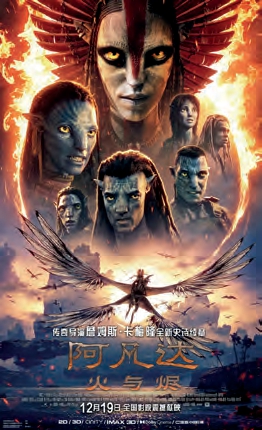 系列第三集《火与烬》承袭核心主题,但有意颠覆了前两集“人类即恶,纳美人即善”的设定。因长子去世,杰克与妻子关系紧张,分道扬镳。纳美人内部出现了好斗的“灰烬族”,其麾下“烈焰军团”操控火焰,焚烧森林。灰烬族头领瓦朗脸上的战纹——黑(火山灰)、白(白骨)、红(鲜血)——是其文明生存逻辑的视觉符号:当神明不再庇佑,复仇便成信仰。他们自封高等文明,实为掠夺借口。片中第三股势力“风之商人”部族则崇尚和平,游走经商。影片通过这三方文明的冲突(影射东西方文明碰撞),同时描绘家园危机与孩子成长,表达了守护家庭的价值观,亦可视为一部家庭片。