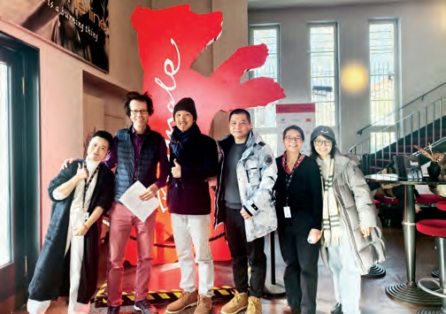 王安忆(左一)、《燃比娃》主创与工作人员在柏林国际电影节。