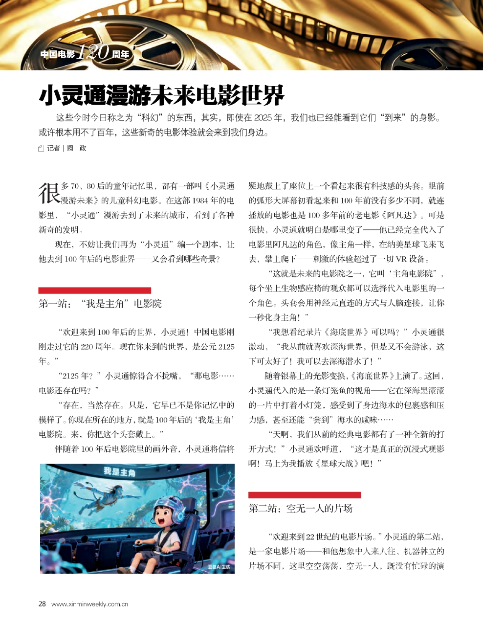 “欢迎来到100年后的世界,小灵通!中国电影刚刚走过它的220周年。现在你来到的世界,是公元2125年。”