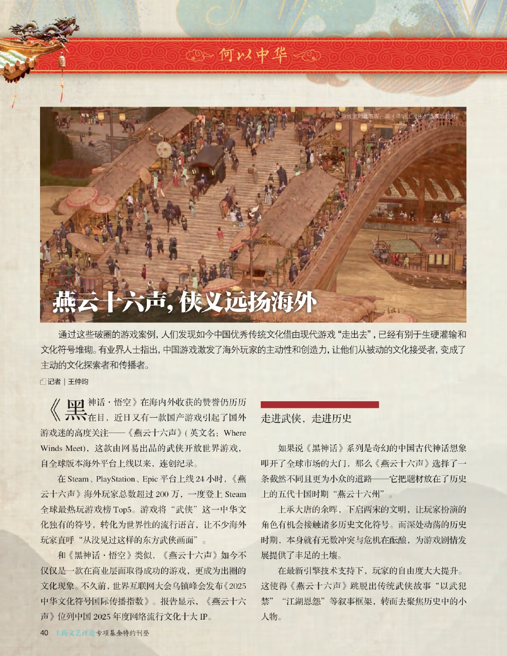 近年来,从《黑神话·悟空》到《燕云十六声》,有关游戏与传统文化传播传承、文化认同的关系的讨论越来越多。