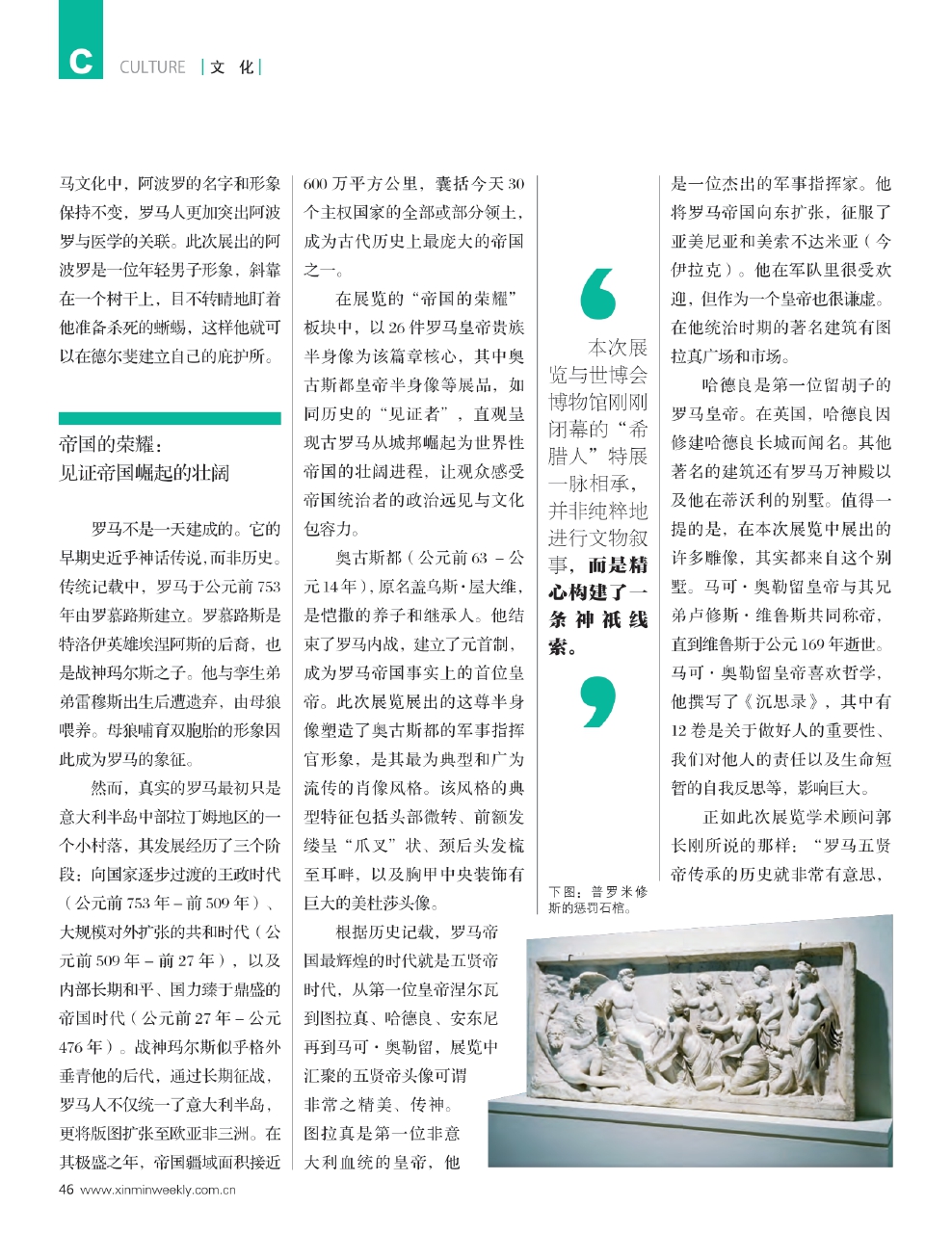 正如此次展览学术顾问郭长刚所说的那样:“罗马五贤帝传承的历史就非常有意思,他们那个时代一切从帝国利益出发,将国家利益置于个人利益之上,对帝国的治理充满了智慧。观众通过观看古罗马五贤帝的雕像,进一步了解和发掘其背后对帝国的治理智慧、治理经验,非常有意义。”