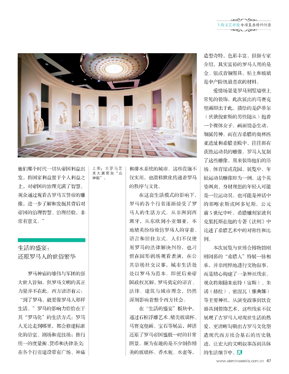 继持续火爆的“古埃及”“古希腊”文明大展之后,备受瞩目的“罗马 罗马:从奥林匹斯到卡皮托利”古罗马艺术大展于近日在上海世博会博物馆正式启幕。