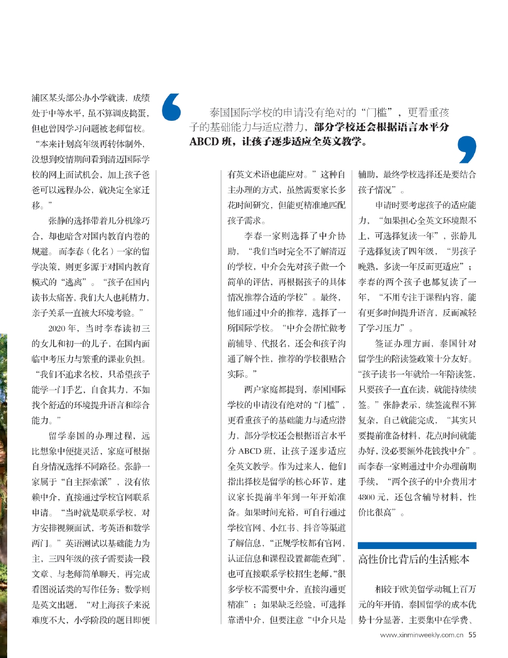 签证办理方面,泰国针对留学生的陪读签政策十分友好。“孩子读书一年就给一年陪读签,只要孩子一直在读,就能持续续签。”张静表示,续签流程不算复杂,自己就能完成,“其实只要提前准备材料,花点时间就能办好,没必要额外花钱找中介”。而李春一家则通过中介办理前期手续,“两个孩子的中介费用才4800元,还包含辅导材料,性价比很高”。