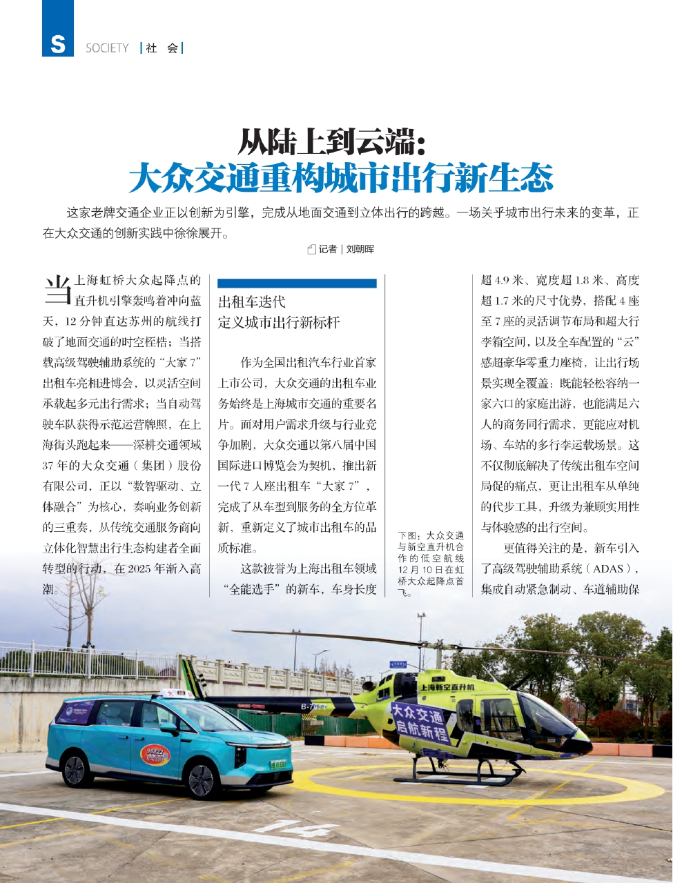 当上海虹桥大众起降点的直升机引擎轰鸣着冲向蓝天,12分钟直达苏州的航线打破了地面交通的时空桎梏;当搭载高级驾驶辅助系统的“大家7”出租车亮相进博会,以灵活空间承载起多元出行需求;当自动驾驶车队获得示范运营牌照,在上海街头跑起来——深耕交通领域37年的大众交通(集团)股份有限公司,正以“数智驱动、立体融合”为核心,奏响业务创新的三重奏,从传统交通服务商向立体化智慧出行生态构建者全面转型的行动,在2025年渐入高潮。