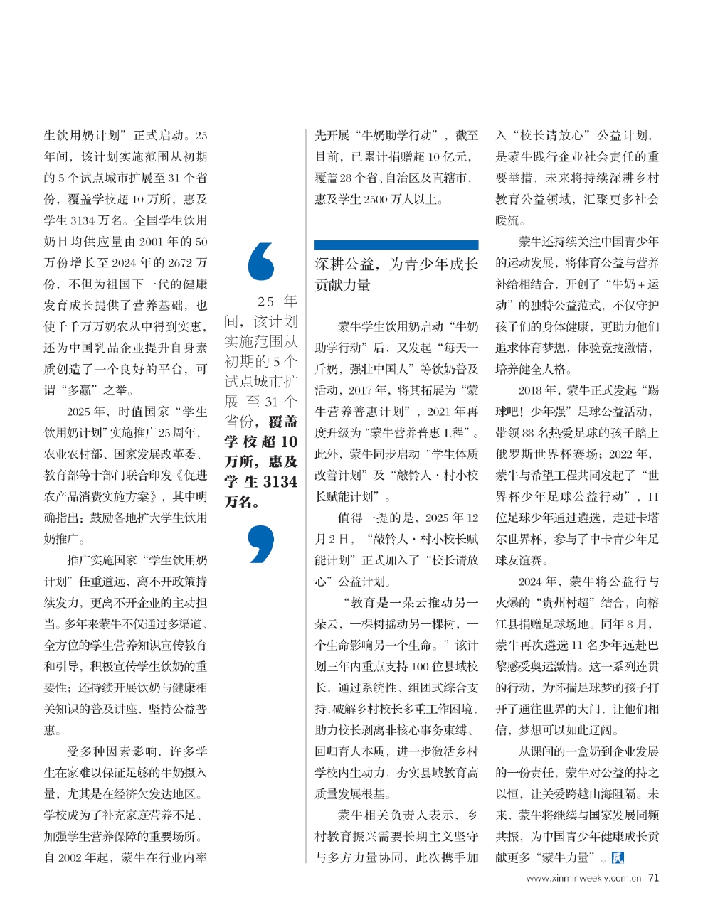 从一盒奶到一份责任 蒙牛25年如一日守护中国青少年