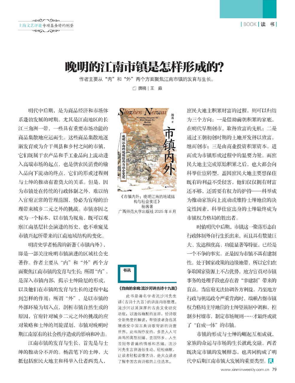作者主要从“内”和“外”两个方面聚焦江南市镇的发育与生长。