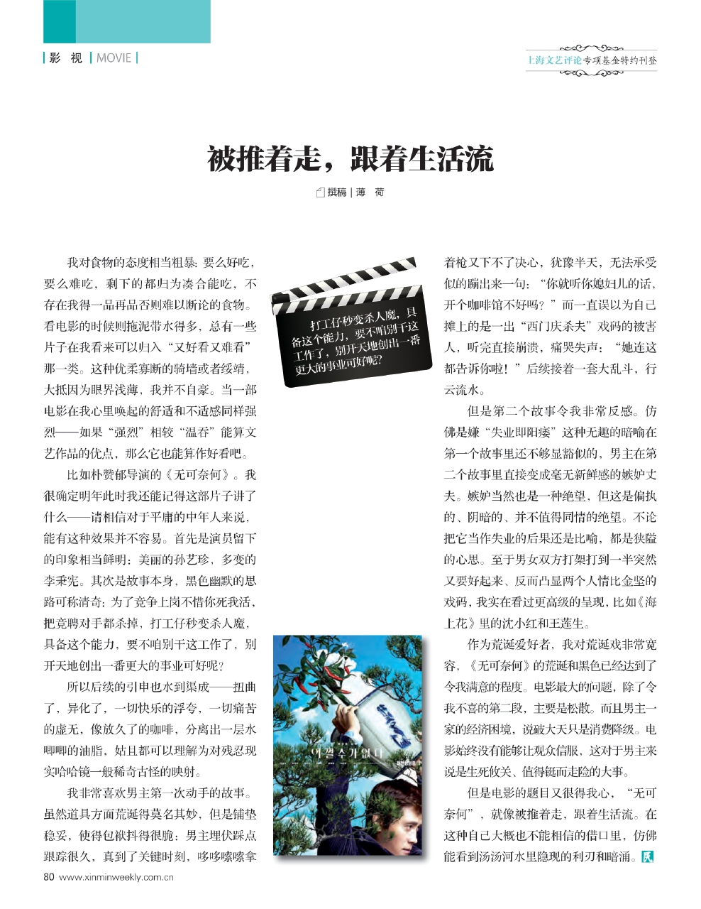 但是电影的题目又很得我心,“无可奈何”,就像被推着走,跟着生活流。在这种自己大概也不能相信的借口里,仿佛能看到汤汤河水里隐现的利刃和暗涌。