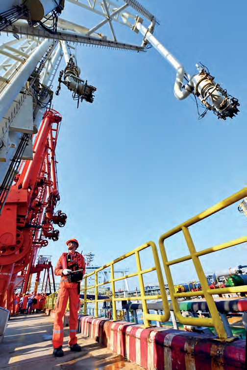 12月18日,装载着石化原辅料的船舶抵达洋浦港后,国投洋浦油储码头工作人员进行卸油作业。
