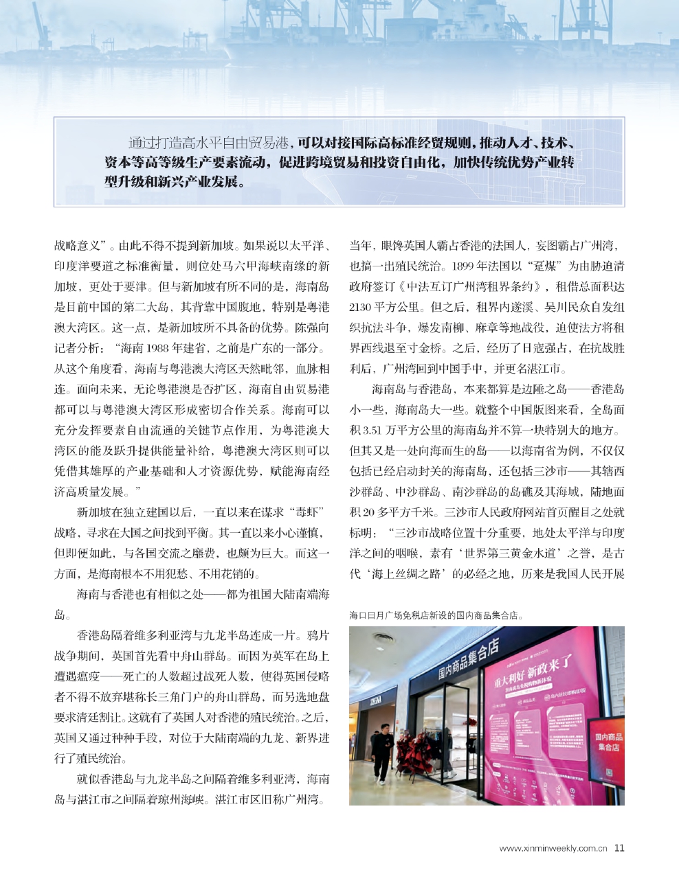 在接受《新民周刊》采访时,同济大学经济与管理学院长聘特聘教授、上海市产业创新生态系统研究中心执行主任陈强分析称:“海南自贸港全岛封关运作是我国进一步扩大开放的重大战略举措,益处多多。通过打造高水平自由贸易港,可以对接国际高标准经贸规则,推动人才、技术、资本等高等级生产要素流动,促进跨境贸易和投资自由化,加快传统优势产业转型升级和新兴产业发展。让海南更好融入全球生产和贸易网络,成为中国链接世界的新节点。”
