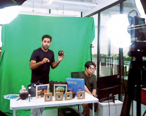 9月22日,在海口复兴城互联网信息产业园,一名来自巴基斯坦的主播在直播间进行直播带货。