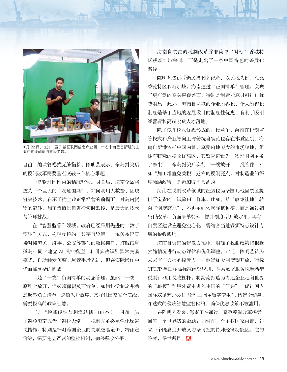 在陈明艺看来,海南正在通过一系列税制改革探索,回答一个世界级的命题:如何在一个主权国家内部,建立一个既高度开放又安全可控的特殊经济功能区。它的答案,举世瞩目。