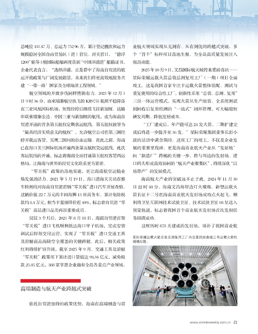从首张“中国洋浦港”船舶国籍证书的颁发,到首条第五航权客运航线的开通;从首个境外高校独立办学项目的扎根,到首个商业航天发射场的圆满首发,海南自贸港建设的每一个“首次”都是一次敢闯敢试的大胆探索,每一个“首个”都是一次突破创新的有力见证。