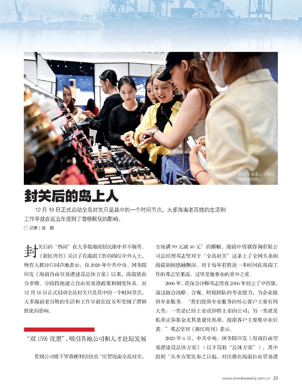 看到公司楼下罗森便利店挂出“庆贺海南全岛封关,全场满99元减40元”的横幅,海南中咨旗咨询有限公司总经理邓志坚对于“全岛封关”这条上了全国头条的海南新闻感触颇深。对于每年有将近一半时间在海南工作的邓志坚来说,这里是他事业的重中之重。