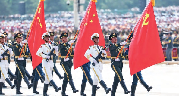 2025年9月3日,纪念中国人民抗日战争暨世界反法西斯战争胜利80周年大会在北京隆重举行。中国人民解放军仪仗方队阔步走来。