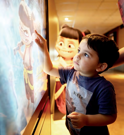 2025年10月2日,一名男孩在阿根廷首都布宜诺斯艾利斯的影院观看《哪吒之魔童闹海》海报。《哪吒之魔童闹海》全球票房超150亿元人民币,位列全球动画电影排行榜首位。